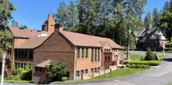 Located at 703 W. Seventh, the F. Lewis Clark House, or Undercliff House as it was called by Clark and is commonly known, is a Tudor Revival home designed by Kirtland Cutter and built in 1896. The home would host numerous high-society functions and social events in its early years. The home was designed to host gatherings like those, with its plans including a billiard room, a ballroom, a large porch on the northern façade overlooking the city, and formal English gardens with red brick paths that matched the brickwork on the home.[2] Like the other extant homes in the Marycliff section, it is located along the hillside overlooking downtown, though it is the farthest back of the remaining homes and closest to the basalt cliff. A number of basalt outcroppings are located around the home, some of which are close enough that they were included in Cutter's design for the structure.[12] A cistern was built adjacent to the home out of basalt rocks. There was also an ice house on the property as well as several greenhoues. Prior to the construction of Marycliff High School in 1929, the manicured lawns and gardens sloped down from the house to Seventh Avenue, where a gatehouse was located.[2]
