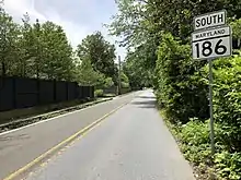 Maryland Route 186 (MD 186) is a state highway in Montgomery County in the U.S. state of Maryland. Known as Brookville Road, the highway runs 1.52 miles (2.45 km) from the District of Columbia boundary at Western Avenue to MD 410 within Chevy Chase. MD 186 passes through an affluent, mainly residential area in its course through the many incorporated and unincorporated areas of Chevy Chase. Brookville Road once connected Tenleytown with what is now MD 97 north of Silver Spring. MD 186 was paved over most of its course by 1910. The northernmost part of the highway was paved when MD 410 was built in the late 1920s.