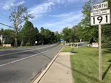 The remainder of the original extent of MD 191 was constructed along mostly new alignment between 1921 and 1923.[7][8] The highway was built as a macadam road along existing Persimmon Tree Road from MacArthur Boulevard in Cabin John north to Potomac and east along Bradley Boulevard to River Road. MD 191 was constructed as a concrete road along a new alignment from River Road to Seven Locks Road. The highway was surfaced with macadam along an existing road from Seven Locks Road to what is today Huntington Parkway, then along new alignment south and east to the intersection of Wisconsin Avenue and Bradley Lane.[8]