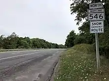 Maryland Route 546 (MD 546) is a state highway in the U.S. state of Maryland. Known as Finzel Road, state highway runs 3.61 miles (5.81 km) from Beall School Road south of an interchange with Interstate 68 (I-68) and U.S. Route 40 (US 40) in Finzel in northeastern Garrett County north to the Pennsylvania state line, where the highway continues as State Route 2010 (SR 2010) in Somerset County. MD 546 was constructed in the early 1930s. Its southern part followed what is today MD 946; the southern terminus was shifted west when I-68 was constructed in the early 1970s. In 2015, the route was extended a short distance south of the I-68 interchange.