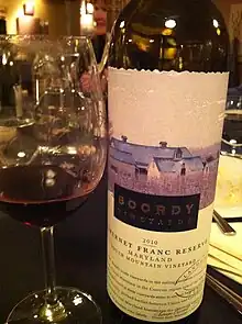 Maryland wine is wine made in the U.S. state of Maryland. The industry has grown rapidly since the first winery in Maryland, Boordy Vineyards, opened in 1945.[4] It is estimated that the industry contributes $50 million annually to the Maryland economy.[5]