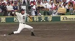 Tanaka as a pitcher for Tomakomai High (taken August 17, 2006, at Koshien Stadium)