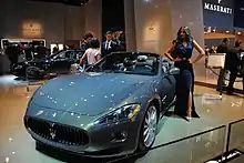 The GranCabrio (GranTurismo Convertible in the United States and Canada)[22] is a convertible version of the GranTurismo S Automatic, equipped with a canvas folding roof. The GranCabrio retains the four seat configuration of the GranTurismo coupé, and is thus Maserati's first ever four-seater convertible.[23]