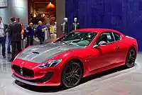 In September 2010, Maserati announced plans to unveil a new version of the GranTurismo - the MC Stradale - at the 2010 Paris Motor Show. The strictly two-seat MC Stradale is more powerful than the GranTurismo at 450 PS (331 kW; 444 hp), friction reduction accounts for the increase, says Maserati, due to the strategic use of “diamond-like coating", an antifriction technology derived from Formula 1, on wear parts such as the cams and followers. It is also 110 kg lighter (1,670 kg dry weight) from the GranTurismo, and more aerodynamic than any previous GranTurismo model - all with the same fuel consumption as the regular GranTurismo.[15] In addition to two air intakes in the bonnet, the MC Stradale also receives a new front splitter and rear air dam for better aerodynamics, downforce, and improved cooling of carbon-ceramic brakes and engine. The body modifications make the car 48 mm (2 in) longer.[16]