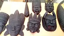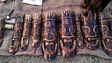 Mask or Mukhosh of West Bengal, as it is known for has a mysterious history. Mostly it uses for the Mask Dance, the folk dance of West Bengal. The wearing of these masks is connected with early types of folklore and religion. There are various type of masks made up of clay, wood, sponge wood or shola, pith, paper, metal etc. Generally, half of these masks are made up of clay, pith and paper and wooden masks are very rare. Some of these masks come from the Tribal of West Bengal. Geographically, West Bengal comes well within this mask using culture zone. Masks in West Bengal is mostly used in folk dance.[1][2] UNESCO selected The Rural Craft Hub of Bengal to showcase their artwork in Paris in 2015.[3]