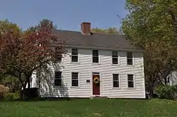 The Mason–Watkins House is located in a rural setting in southwestern Surry, at the northwest corner of Old Walpole and Mine Ledge Roads. It is a 2+12-story wood-frame structure, with a gabled roof and clapboarded exterior. It is five bays wide, with a central chimney, and simple window casings. Windows are arranged symmetrically around the center entrance, which is topped by a four-light transom window. A single-story ell extends to the rear, terminating in a former carriage house converted to garage. The interior has a typical Colonial central chimney plan, with a narrow vestibule that includes a tight triple-run staircase, with the parlor and dining room flanking the chimney. The fireplace surrounds in these two rooms are original, exhibiting Federal period styling.[2]