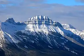 The mountain is composed of sedimentary rock laid down during the Precambrian to Jurassic periods.[4] Formed in shallow seas, this sedimentary rock was pushed east and over the top of younger rock during the Laramide orogeny.[5]