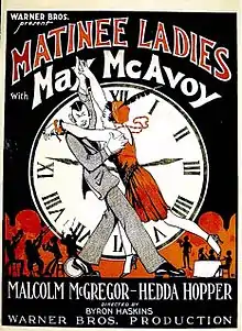 Matinee Ladies was a 1927 American silent comedy film produced and distributed by Warner Bros. Directed by Byron Haskin, the film starred May McAvoy and was Haskin's first directorial effort after having been a cinematographer.[1] Matinee Ladies is now considered lost.[2][3][4]