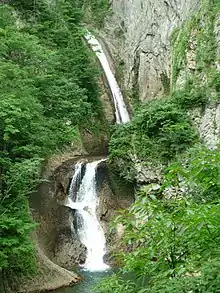 Matsumi Falls (松見の滝, Matsumi-no-taki) is a waterfall in the city of Towada, Aomori Prefecture, Japan, on a tributary of the Oirase River, which flows down from Lake Towada. It is one of "Japan’s Top 100 Waterfalls", in a listing published by the Japanese Ministry of the Environment in 1990.