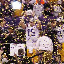 Matt Flynn (No. 15) quarterbacks the LSU Tigers during the 2008 BCS National Championship Game against the Ohio State Buckeyes.