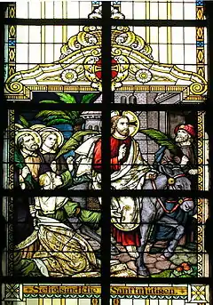 Matthew 5:5 depicted in the window of a Trittenheim church