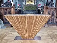 His altar installed in St Thomas's Church, Salisbury in 2020 consists of 1,152 tapered pieces of English oak.[5]