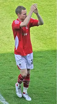 Done started the opening game of the 2009–10 season against Morecambe and set up one of the goals in a 2–2 draw.[25] However, he struggled to win starts and spent much of the season on the substitute bench, whilst he also struggled with injury concerns.[26] As a result, Done made 25 appearances in all competitions and was released by the club at the expiry of his contract.[27][28][29]