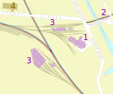 Maudland Bridge railway station was once the Preston terminus of the Longridge Branch Line, in Lancashire, England. It was located on Maudland Road, between a bridge over the Lancaster Canal and Cold Bath Street. The Maudlands district of Preston gets its name from the medieval St. Mary Magdalen's leper hospital, which once stood near the present-day St Walburge's Church.[2]