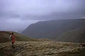 Maumtrasna, historically Formnamore (Irish: Formna Mór, 'the great shoulder'),[2] is the highest of the Partry Mountains in south County Mayo, Ireland, rising to 682 metres (2,238 ft) above sea level.[1] The summit is broad and flat with several ridges running off it, including Skeltia (An Scoltach), Benwee (Binn Bhuí), Buckaun (An Bocán)[2] and Binnaw (Binn Fheá).[3] The peak of Knocklaur (Cnoc Láir, 'middle hill') stands on the ridge between Maumtrasna and Devilsmother mountains.[4]