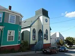 Mayo Street Arts is a community arts and performance venue in the East Bayside neighborhood of Portland, Maine. It was founded in 2010 by Blainor McGough[1] after leasing the building which was formerly St. Ansgar Church.[2] Mayo Street Arts' second executive director, Ian Bannon, succeeded McGough in May 2020 following McGough's resignation[3]. Located next to Kennedy Park, a public housing development and close to many other public housing areas, Mayo Street Arts serves as a theater, concert venue, art gallery, and meeting space and offers affordable artist studios, rehearsal space, and a teaching platform for visual and performing artists of multicultural backgrounds[4]. Programming is varied, but with a particular focus on puppetry, folk music, and dance[4].