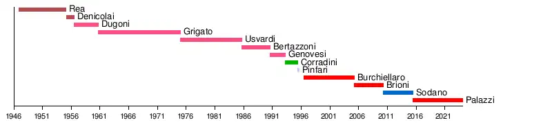 | 3 | Eugenio Dugoni | 1956 | 1960 | PSI |
