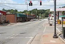 McCaysville is located along the northern border of Fannin County and the state of Georgia at 34°58′54″N 84°22′13″W / 34.98167°N 84.37028°W (34.981534, -84.370293).[5] It is bordered to the north by its twin city of Copperhill, Tennessee. The two are situated as a single town along a river, known as the Toccoa River in Georgia and the Ocoee River in Tennessee. The change takes place in the middle of town at the state line, which runs diagonally relative to the street grid, which is aligned with the river rather than the border. The boundary also means that the McCaysville side is in area code 706, while the Copperhill side is in area code 423.