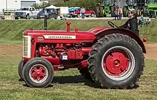 The McCormick-Deering W-6 was the W-series version of the Farmall M, using the M's C248 engine, again in gasoline, distillate or kerosene versions. The remainder of the W-6 drivetrain was similar to the W-4's, but the tractor was heavier at 4,800 pounds (2,200 kg). A diesel version was also offered, the WD-6. The WD-6 was rated for three or four plows. As with the W-4, versions were made in W-6, WD-6, O-6, I-6 and ID-6 models.[8] OS-6 and ODS-6 models omitted the sheet metal guards, but kept the rearranged exhausts.