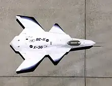 The McDonnell Douglas (later Boeing) X-36 Tailless Fighter Agility Research Aircraft was an American stealthy subscale prototype jet designed to fly without the traditional empennage found on most aircraft. This configuration was designed to reduce weight, drag and radar cross section, and increase range, maneuverability and survivability.[2]