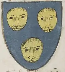 • Ceulx de Maligny – Azure, three lions' faces or. ~ Armorial de Berry, 1440s