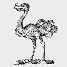 • McGhie [England] – Sable, a fesse between three leopards' faces Argent. Crest: an ostrich Argent, in the beak a horse-shoe Azure. ~ Robson's The British Herald', 1830