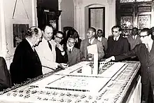 Hafizur Rahman (forth from left) with Ayub Khan, I H Usmani, M H Zuberi, Ghulam Ishaq Khan viewing the PINSTECH model presented by Edward Durell Stone, November 1961