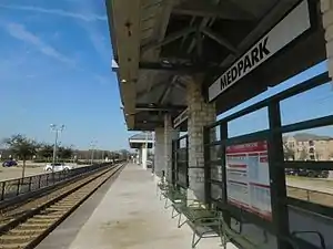 MedPark station is a commuter rail station in Denton, Texas serving the A-train line. It is east of Interstate 35E and serves Denton Regional Medical Center and a major retail area surrounding Golden Triangle Mall in Denton. MedPark station is currently the penultimate A-train station.