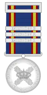 The Campaign Medal (Spanish: Medalla de Campaña ) is a Spanish permanent military decoration. The medal is awarded to members of the Spanish Armed Forces, Allied forces and civilians participating in foreign military campaigns without international military decorations. It was created on 25 May 2018.