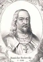 The ceremonial mace currently used by the Medical University of Innsbruck was given by Olomouc bishop Stanislav Pavlovský to the University of Olomouc in ca. 1588. It is 163 centimeters high, it is made of silver and has gold plating. It bears inscription S. P. E. O. (Stanislaus Pawlowski Episcopus Olomucii) and other ornaments.[2]