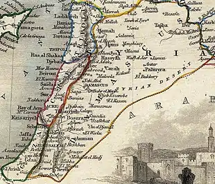 Rashid Pasha extended direct rule to the plain of Hauran, which was Syria Vilayet's principal grain-producing region, designating it a sanjak under Kamil Pasha, a Turkish mutassarif (governor of a sanjak). He ended the peasants' withholding of grain supplies in protest at the government monopoly set up by As'ad Mukhlis Pasha and the presence of imperial troops in the Hauran by offering the peasants tax concessions; he refused to withdraw government troops, however.[25] In December 1866, Rashid Pasha met the powerful Druze sheikh Ismail al-Atrash in Damascus and appointed him mudir (subdistrict governor) of Jabal al-Druze, the mountainous area of the eastern Hauran.[26] He also allocated adequate grazing lands for the flocks of the Bedouin Ruwallah and Wuld Ali tribes, both major rivals of the Druze clans and the Hauran peasantry.[25] Al-Atrash's appointment upset his Druze rivals from the Bani Amer and Al Hamdan clans.[26] In June 1868, the latter two allied with the Bedouin Sulut tribe of the Lajat, a barren and lawless region north of Jabal al-Druze, against the Bani al-Atrash. To avert conflict, Rashid Pasha held a summit of the Druze sheikhs in which Ismail was dismissed in favor of his son Ibrahim. Soon after, Rashid Pasha reorganized Jabal al-Druze into a qadaa of Hauran administered by a council headed by a qaimmaqam. The new qadaa was divided into four nahiyas (subdistricts) based on the boundaries of the existing Druze mashaykha (sheikhdoms).[27]