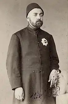 Mehmed Rashid Pasha (Turkish: Mehmed Râşid Paşa, Arabic: محمد راشد باشا, romanized: Muḥammad Rāshid Basha; 1824–15 June 1876) was an Ottoman statesman who served as the vali (governor) of Syria Vilayet in 1866–1871 and as minister of foreign affairs of the Ottoman government in 1873–1874 and 1875 until his death. Rashid Pasha was raised in Egypt where his father was an aide of the governor Muhammad Ali and was educated in Paris before joining government service in Istanbul in 1851. There he became a protege of the grand vizier Ali Pasha, a key figure in the empire-wide Tanzimat reforms. After the latter was reappointed grand vizier in 1866, Rashid Pasha was appointed governor of the Damascus-centered Syria Vilayet which extended from Tripoli and Hama in the north to Palestine and Transjordan in the south.