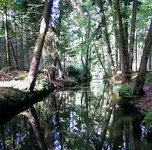 The Meiße rises south of Wietzendorf in the nature reserve of Großes Moor (near Becklingen).[2] Originally the upper course of the upper Wietze (Örtze) was the headstream of the Meiße before the Großes Moor diverted the Wietze into the River Örtze at a point south of the sharp bend in the river near Wietzendorf as a result of headward erosion. The Meiße flows through the villages of Bleckmar, Hasselhorst (in the unincorporated area of Lohheide on the Bergen-Hohne Training Area), Belsen, Hörsten, Gudehausen and Hartmannshausen (all three also belonging to Lohheide), as well as Meißendorf, and discharges into the Aller south of Hodenhagen after about 41 kilometres (25 mi).