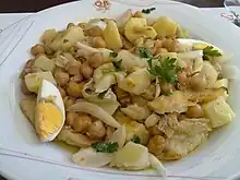 Meia-desfeita is a Portuguese dish,[1][2] typically from Lisbon. It consists of cod (Bacalhau), cooked with chickpeas. It can be seasoned with onions and garlic sautéed in olive oil, parsley, paprika and vinegar, among other possible spices,[1] and may or may not be finished in the oven.