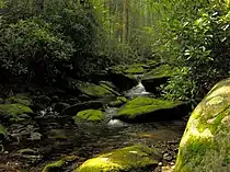 Geologically, Meigs Mountain is composed of Precambrian rocks (primarily sandstone) of the Ocoee Supergroup, formed from ancient ocean sediments nearly a billion years ago.[1] Rock exposures are not very common along the Meigs Mountain Trail, although the trail crosses multiple steambeds littered with rocks and small boulders. The streams that drain Meigs Mountain are part of the Little River watershed.