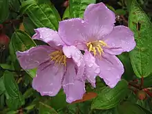 Melastoma septemnervium are erect shrubs or small trees up to 5 m tall.[2] Leaves are elliptical with short stiff hairs or scales on the upper surface and finer dense hairs on the lower surface but with a mixture of scales on the nerves.