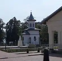 The chapel in Roman dedicated to Ștefănescu; his statue is at left.