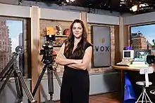 While serving as director of platforms for The Washington Post, she and Ezra Klein left to co-found the website Vox with Matt Yglesias in early 2014.[5] She served as executive editor and senior product manager for the new website.[4][6] In this role, she led the development of the site and managed teams focused on analytics, graphics, and the news app.[1][7] Bell was appointed vice president of growth and analytics for Vox Media in 2015. She worked on audience and new product development, and established best practices for all of Vox Media's sites (Curbed, Eater, Polygon, Racked, Recode, SB Nation, The Verge, and Vox).[1][5] Bell was named publisher of Vox Media in mid 2016,[8] with responsibilities for audience and brand development.[9]