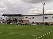 In 2017, in preparation for redevelopment at the Melksham House site, the club moved to Oakfields, a new £7.3 million facility shared with Melksham Rugby Club on the eastern edge of the town.[11] The first match at the new ground was played on 14 January 2017 against Bristol Manor Farm in the FA Vase, with the visitors winning 5–3 in front of a crowd of 1,215.[12]