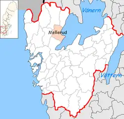 Mellerud Municipality (Melleruds kommun) is a municipality in Västra Götaland County by Lake Vänern in Sweden. Its seat is located in the town of Mellerud.