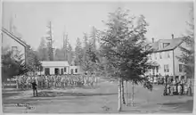 After Forest Grove was approved in 1879, Wilkinson brought his first group of Native American children to the school from the Puyallup Reservation in Washington. The children themselves constructed the first school buildings.[3] Wilkinson had extreme difficulty accumulating funding for his school. While he was originally given $5000 in funding, he was unable to accumulate any significant amount, most likely due to the unpopularity of the school in the surrounding areas.[1]