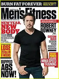 ![]() Robert Downey Jr. on the cover of Men's Fitness (U.S.), Jan/Feb 2012. | |