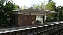 In 1934 the signal box was closed and semaphore Intermediate Block Signals, controlled from Moreton and Hoylake boxes, were introduced, the only such signals on the Liverpool to West Kirby line. They broke the otherwise long distance between Moreton and Hoylake, the two signal boxes on either side. These semaphore signals remained until 1994 when the line was resignalled with colour-light signals. The station underwent refurbishment with work in 2010 which involved new glazing to the footbridge windows and staircase, redevelopment of existing buildings to provide enclosed passenger waiting shelters, a new passenger toilet and automatic entrance doors to the booking hall.[1] Work began on installing lifts for both of the platforms in 2019 and the lifts opened for use in January 2020.[2]