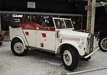In 1951 and 1952 Mercedes-Benz produced a 170 D OTP version[12] for police use. This was effectively a four-door cabriolet, although the hood was of rather a thin material and basic structure when compared to the 170 cabriolets of the 1930. It was a requirement that all the cars should be painted in "Police Green", but in the end most of the cars delivered to the police were painted blue. Although the car was provided only for the use of official bodies, it incorporated several technical and other features, including for the first time on a 170 car a trunk/boot accessible from the outside via a hinged lid, which soon afterwards appeared on other upgraded W136s. A single one known to have been painstakingly fully restored in the United States is the closest to factory original in existence today. A fully restored OTP sold to a private collector fetched north of 350,000 Euro, in 2015.