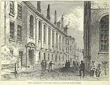 The school was founded in 1561[1] by Thomas White of the Merchant Taylors' Company in a manor house in the parish of St Lawrence Pountney in the City of London, where it remained until 1875.