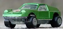 Earlier Speedy models from the later 1960s had rubber tires which is rare in smaller scale diecast cars. About 1970, the "Hot Wheels" syndrome caused low friction plastic wheels to be added and the name of the line was altered to "Speedy Velox".[16]