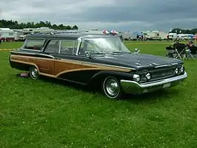 The Mercury Colony Park is an American luxury full-size station wagon that was marketed by the Mercury division of Ford Motor Company between 1957 and 1991. Distinguished by its simulated wood-grain paneling, the Colony Park was marketed as either the premium-trim or the sole full-size station wagon offering of the division. Following the 1960 demise of Edsel, full-size Mercury vehicles shared bodywork with Ford; the Colony Park served as the counterpart of the Ford Country Squire through 1991.