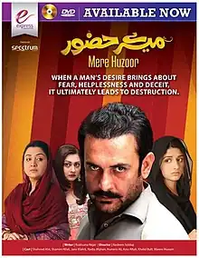 Mere Huzoor (transl.My Lord) is a Pakistani television drama series aired on Express Entertainment for the 2012 television season. It is produced by Asif Raza Mir and Babar Javed under the banner of A&B Entertainment, written by Rukhsana Nigar, directed by Nadeem Siddiqui, and features Shahood Alvi, Jana Malik, Nadia Afgan, Azra Aftab, and debutante Mawra Hocane.[1][2] At the 12th Lux Style Awards, the series received a best television actor nomination due to Alvi's performance.[3]