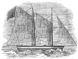 Messenger of Peace, as she appeared when leaving Rarotonga for Tahiti, with her mat-sails, &c.