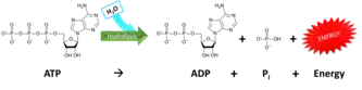 H2O + ATP → H+ + ADP + Pi + energy → muscle contraction[5]